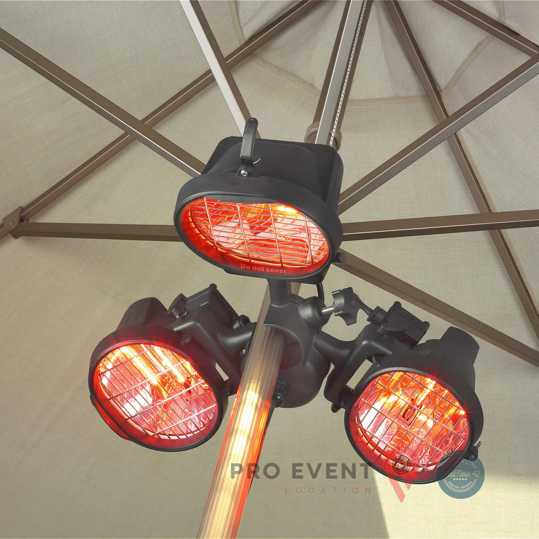 Prolongez vos soirées et événements même en hiver grâce à ce chauffage radiant électrique au design type parasol. Compact, élégant et facile à installer, il assure une diffusion de chaleur homogène pour une surface d’environ 12 m². Ce chauffage vient se fixer autour d'un mat (Voir photo)
