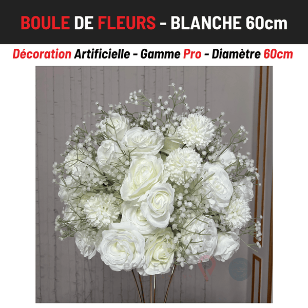 Apportez de la couleur et de la gaieté à vos événements avec notre boule de fleurs Blanche 60cm en location !