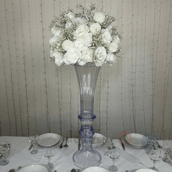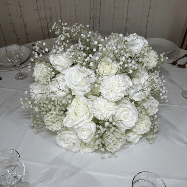 Nos boules de fleurs Blanche sont parfaites pour créer des centres de table éclatants, habiller vos buffets ou décorer vos arches florales. Leur large diamètre de 60 cm offre un rendu visuel spectaculaire qui fera sensation auprès de vos invités.