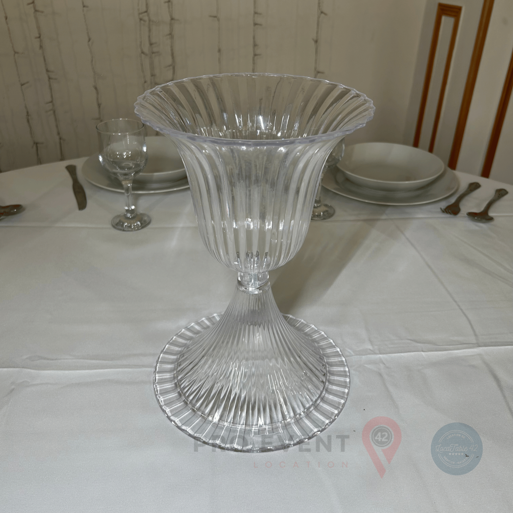 Apportez une touche d'élégance et de modernité à vos événements avec notre vase Sablier transparent en location !
