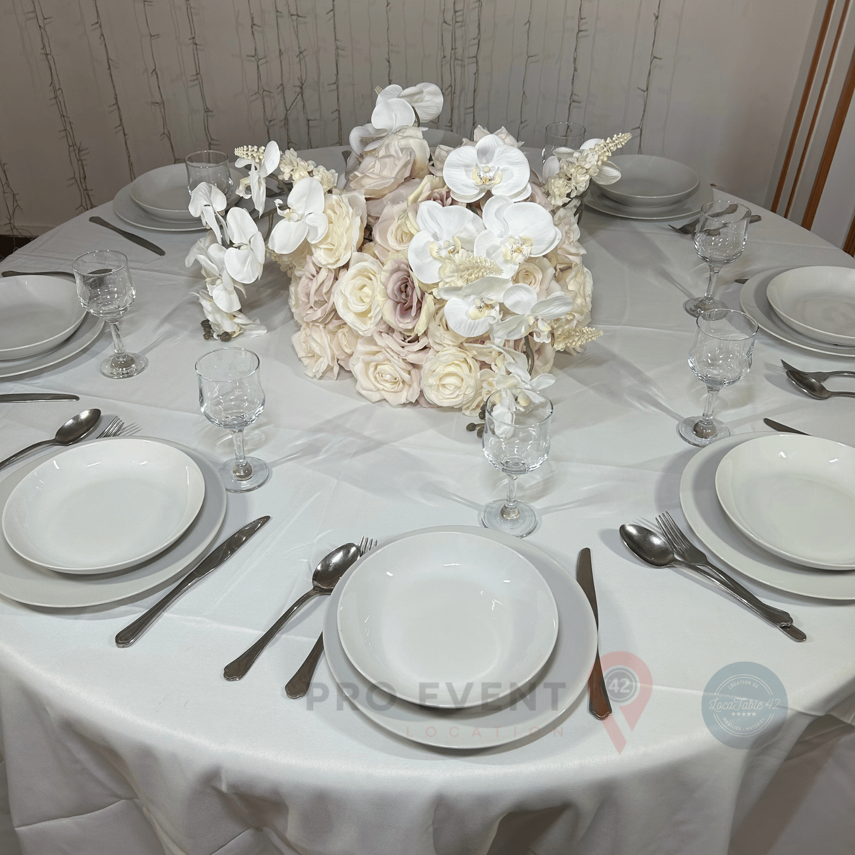 Location Pack | Table Ronde + Nappe Carrée Blanche