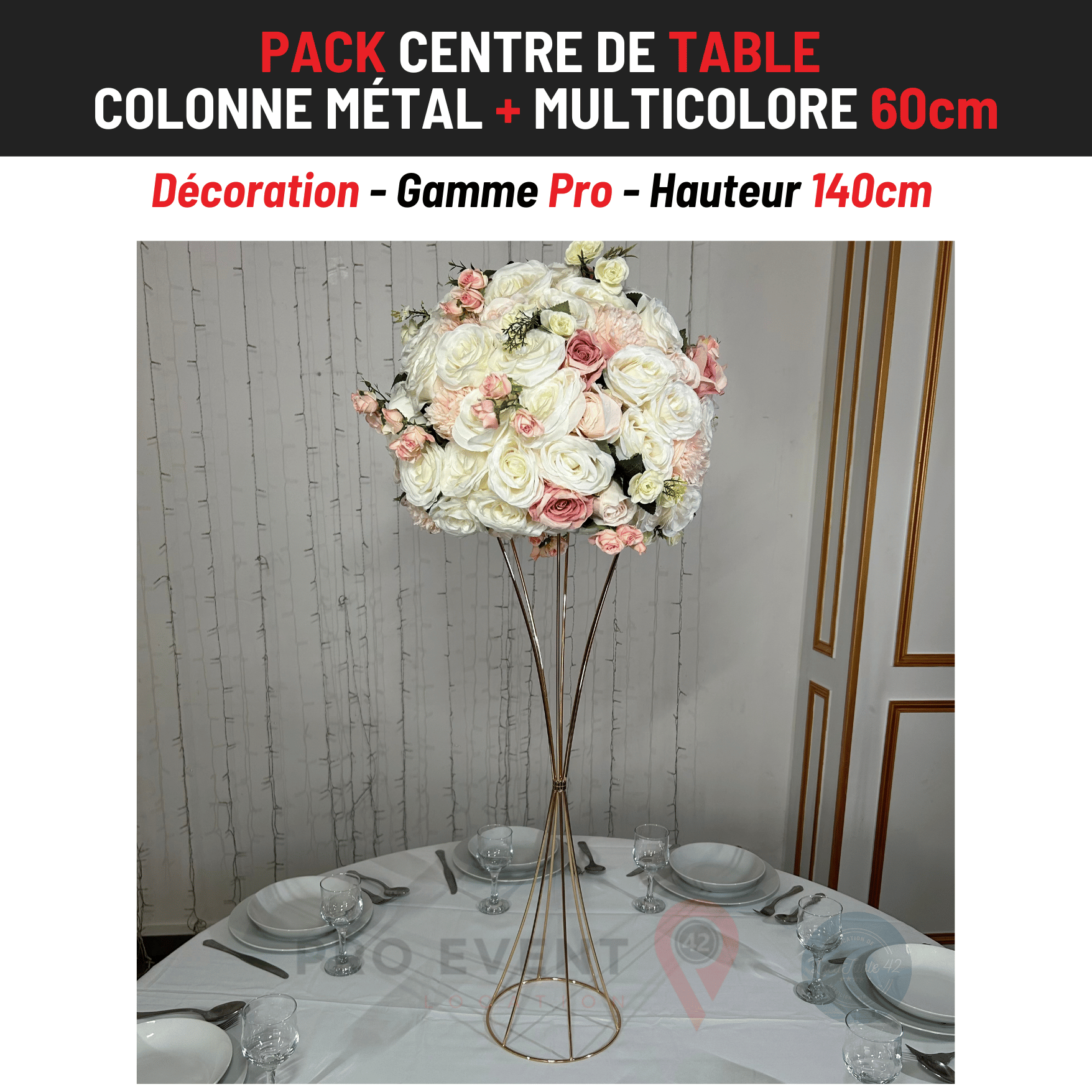 Location Centre de Table : Colonne Métal + Multicolore 60cm