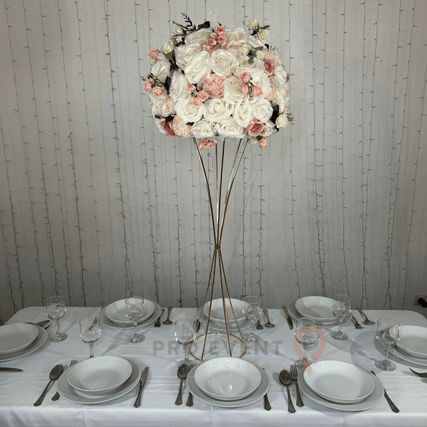 Sublimez vos événements avec notre centre de table composé d'une colonne métal moderne et élégante, accompagnée d'une superbe boule de fleurs multicolore de 60 cm. Ce centre de table haut de gamme apportera une touche de sophistication et de couleur à vos mariages, réceptions, anniversaires, baby showers, ou tout autre événement spécial.