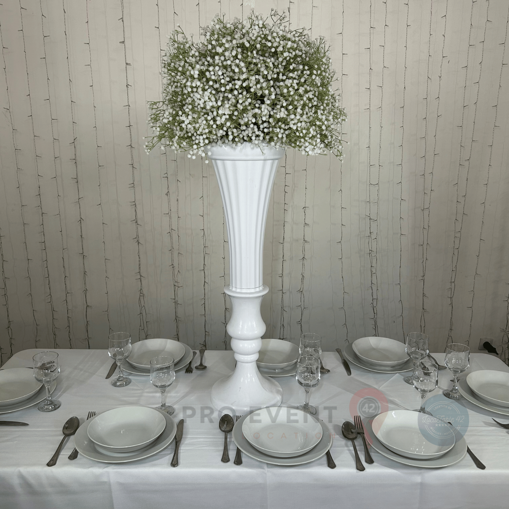 Location Centre de Table : Vase Balustre Blanc + Gypsophile 60cm